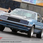 Qualifying just a few ticks behind HiPo Joe Charles, Darin Hendricks landed in the number-two slot with a 10.53 at 127.59 mph. With a stout 10 cars in the Coyote Stock ranks, meant Darin would have to go four rounds for the win. After putting a second on Matt Williams in the first round, Darin’s first real fight came against Mike Bowen in the second round. Darin got the jump and the race was over right away. He rode a bye into the final where he met up with Joe Marini’s ’11 GT. Darin left first and ran the quicker e.t. to take the win (10.55 vs. 10.57). Darin also chalked up another win for the NMRA by besting Dave Hutnik’s Xtreme Street Camaro.