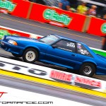 While we were on hand to cover the NMRA side of things, we couldn’t help but check in on the Mustangs running over on the NMCA side of things. One of the most significant NMCA Mustang passes of the weekend was by MMR-sponsored racer Greg-Seth Hunter running his GT500 in Pro Street. He laid down a 6.09/242 rocket blast that reset the record for the fastest modular Mustang so far.